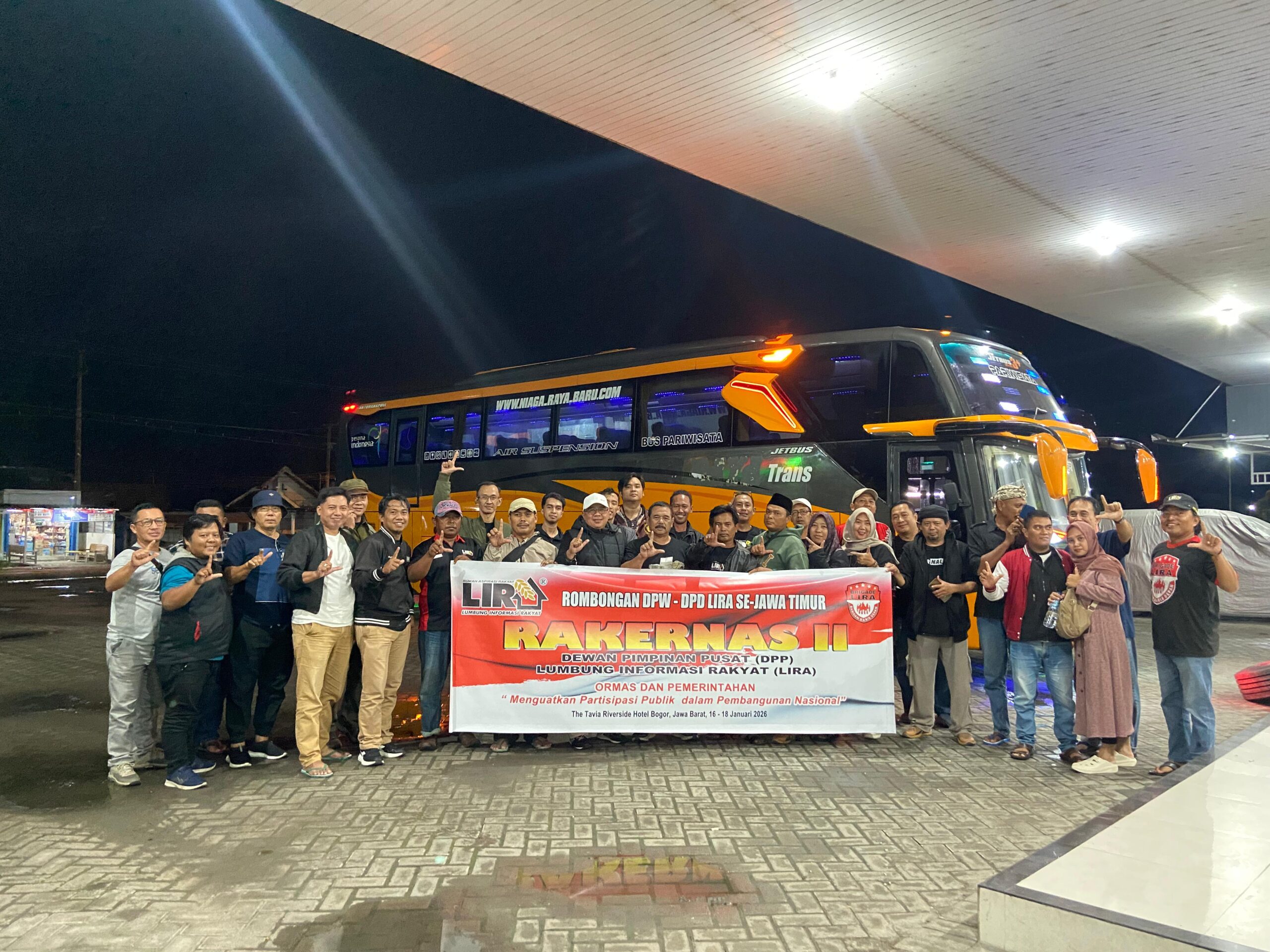 Gubernur LIRA Jawa Timur H. M. Zuhdy Achmad, S.H., merasa bangga atas kekompakan semua pimpinan daerah baik Bupati atau walikota LIRA satu rombongan berangkat bersama guna mensukseskan acara tersebut.